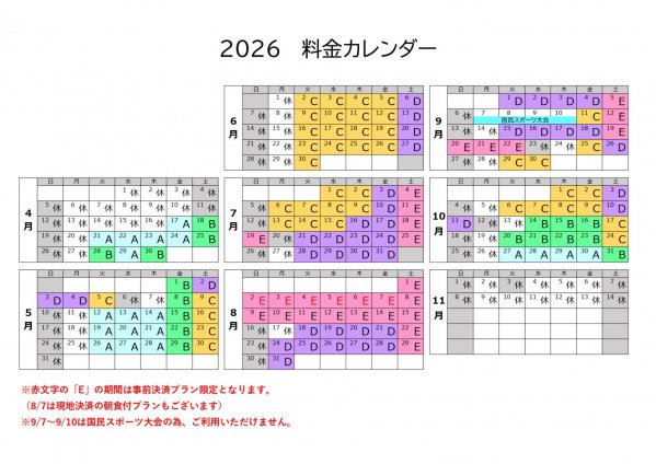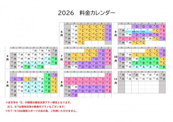 ご希望のお日にちの料金は『料金カレンダー』からご覧ください。